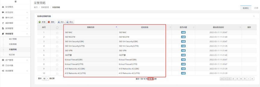 必一运动Bsports数码DCSSA日志审计系统内置丰富的标准化策略,覆盖800余种主流的系统和设备,支持2万余种日志,精确快速匹配策略,操作便捷,一步到位,轻松解决企业面临的设备繁多、日志信息难以集中管理的困境,能帮助业务新手秒变专家。在资产管理模块维护资产时,只需要选择【开启智能绑定采集器】,DCSSA日志审计系统就会自动根据资产系统类型,精确匹配正确的标准化策略。