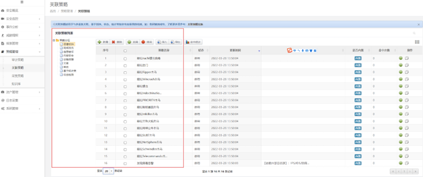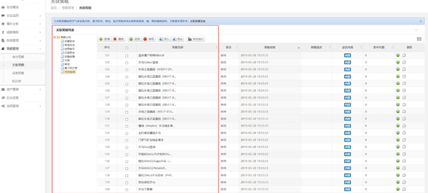 检验日审功能的另一个试金石是关联分析能力。针对日志自动化、集中度、关联度不够的问题,必一运动Bsports数码DCSSA日志审计系统支持基于规则、统计、情报的分析模型,内置丰富的安全策略模板、高效的实时关联分析能力、灵活的审计策略,充分发挥日志分析及审计机制的最大效力。帮用户实现对日志的关联性处理,让用户能有效处理纷杂无序的日志信息。