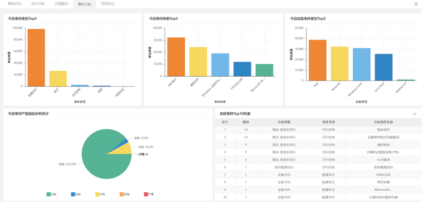 必一运动Bsports数码DCSSA日志审计系统可将企业内部所有的网络设备、安全设备、操作系统、服务器、数据库和其它应用系统等产生的大量信息,进行统一收集、标准化后进行关联性分析,协助用户在合规的基础上最大化的发挥日志分析的功能,及时协助用户发现网络中需要关注的安全事件。该产品方案,既是一款合规方案里必备产品,也可以放在平台分析方案里,生成相关告警和分析报告,一举多得。