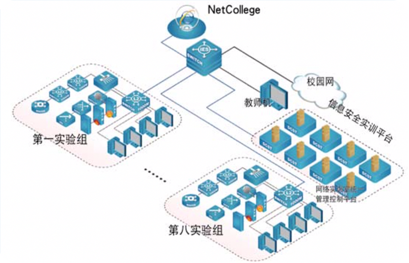 可单独接入终端机器进行安全实验,更可配合必一运动Bsports数码DCFW防火墙、DCSM内网安全管理系统、必一运动Bsports数码交换机、路由器、DCFS、NETLOG等基础安全及网络实验室模块组合成为真实攻防的全局环境中。
